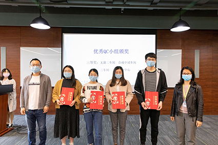 聚会共表扬“军令状-优异部分”1个,,,,,以及“优异QC小组”一等奖1个、二等奖3个、三等奖4个,,,,,由赵梦晗总监、朱文华总监为获奖代表颁奖。。。。。“军令状-优异部分”代表随后上台,,,,,团结本职事情优化、质量目的告竣、下阶段营业睁开举行分享,,,,,获得了加入职员的一致好评。。。。。