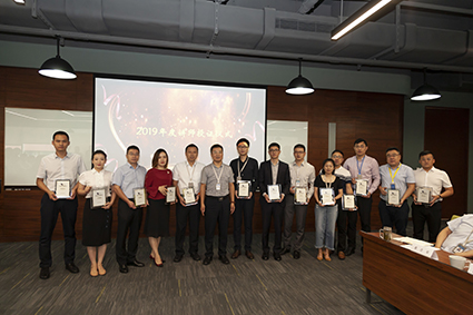 授证仪式随即举行,,,,,,副总司理张翎宣读了公司关于2019年度初级讲师授证以及表扬优异讲师的决议,,,,,,授予营销、非营销系总共51名员工“初级内训师”证书,,,,,,表扬优异讲师7人,,,,,,由执行副总张震乾、资深副总王宽起、副总司理张扬清为列位讲师授证、颁奖。。。。。。。。